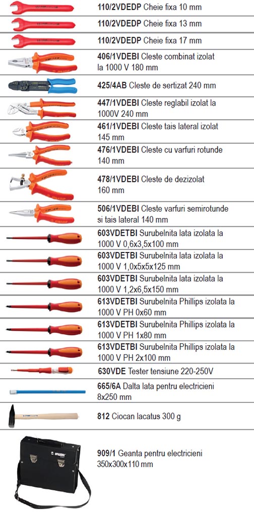 Se livreaza in geanta pentru electricieni ( Lungime 350 x Latime 300 x Inaltime 110 mm)
