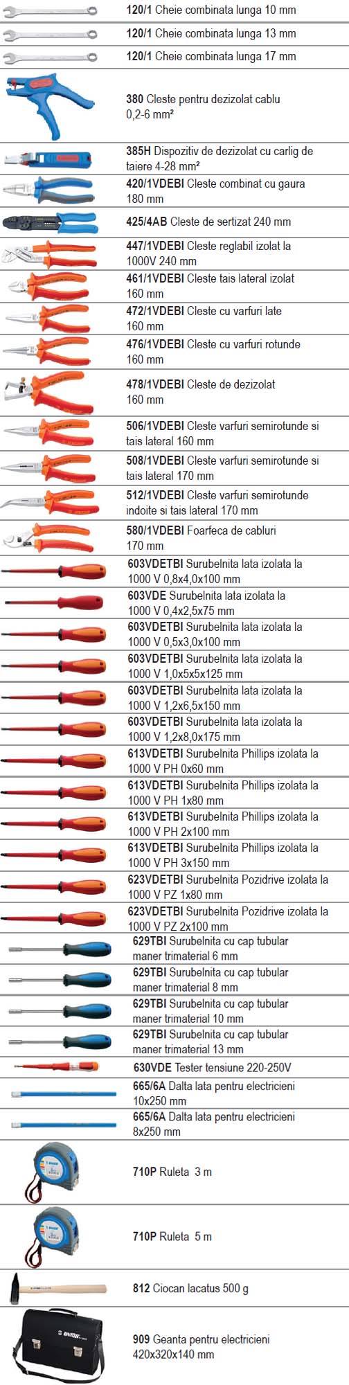 Se livreaza in geanta pentru electricieni ( Lungime 420 x Latime 320 x Inaltime 140 mm)