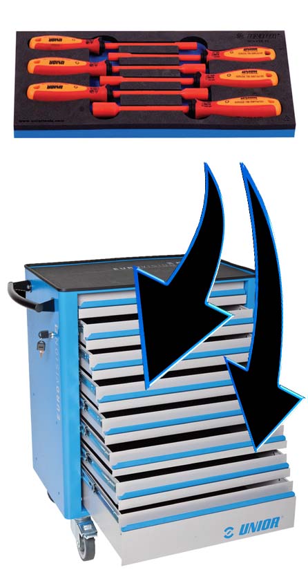 Modulele SOS se pot achizitiona separat sau ca si parte componenta a carucioarelor de scule Unior.