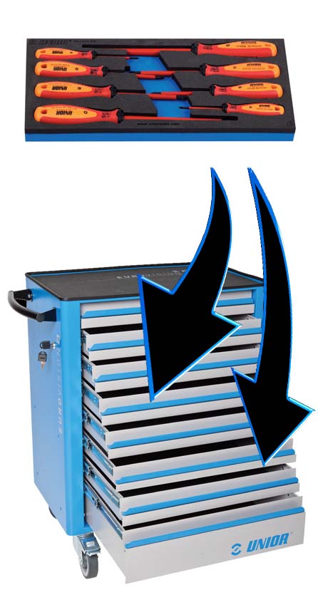 Modulele SOS se pot achizitiona separat sau ca si parte componenta a carucioarelor de scule Unior.